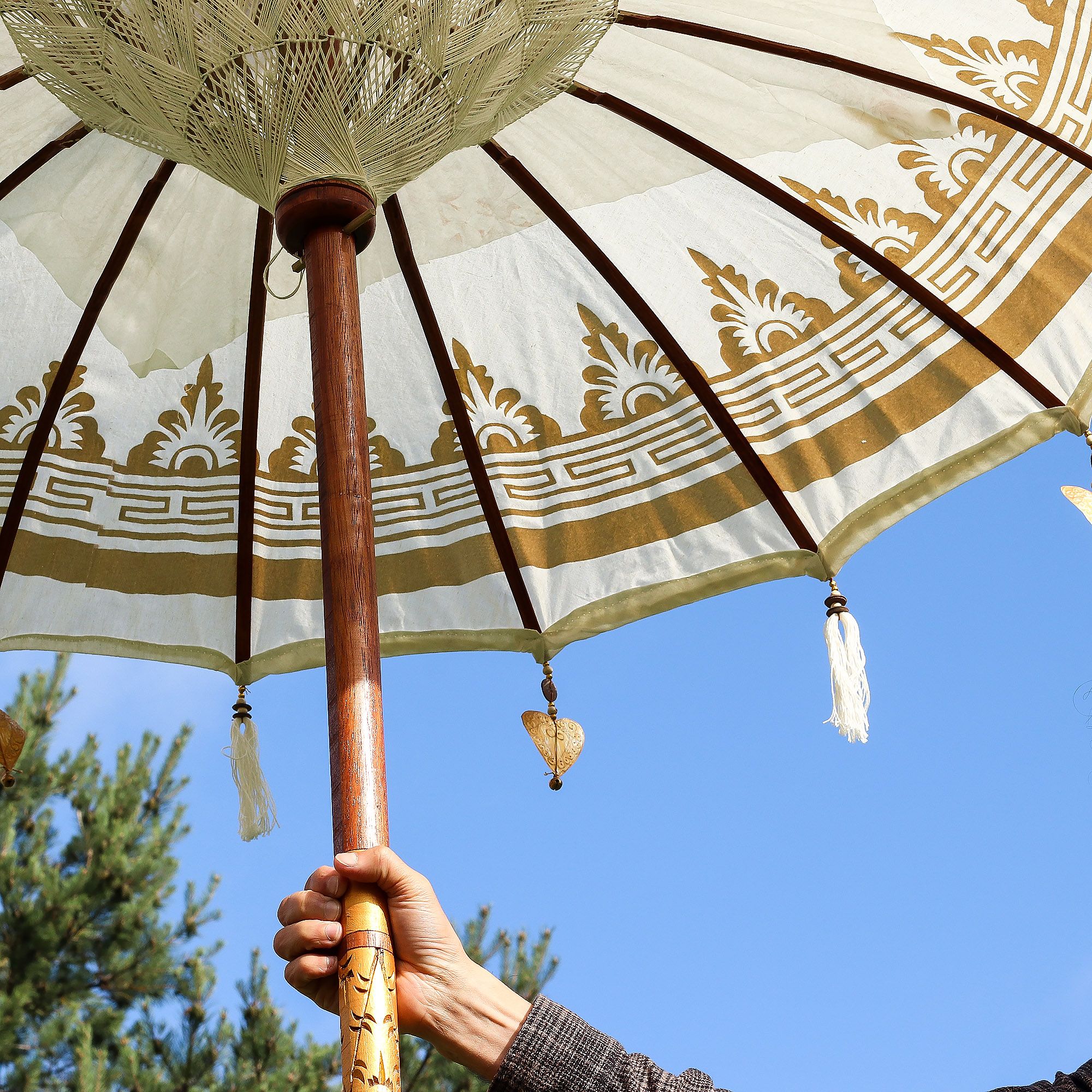 Bring a touch of Balinese elegance to your garden or patio. This parasol combines natural materials and artistic detailing, creating both shade and serenity in any outdoor setting.
