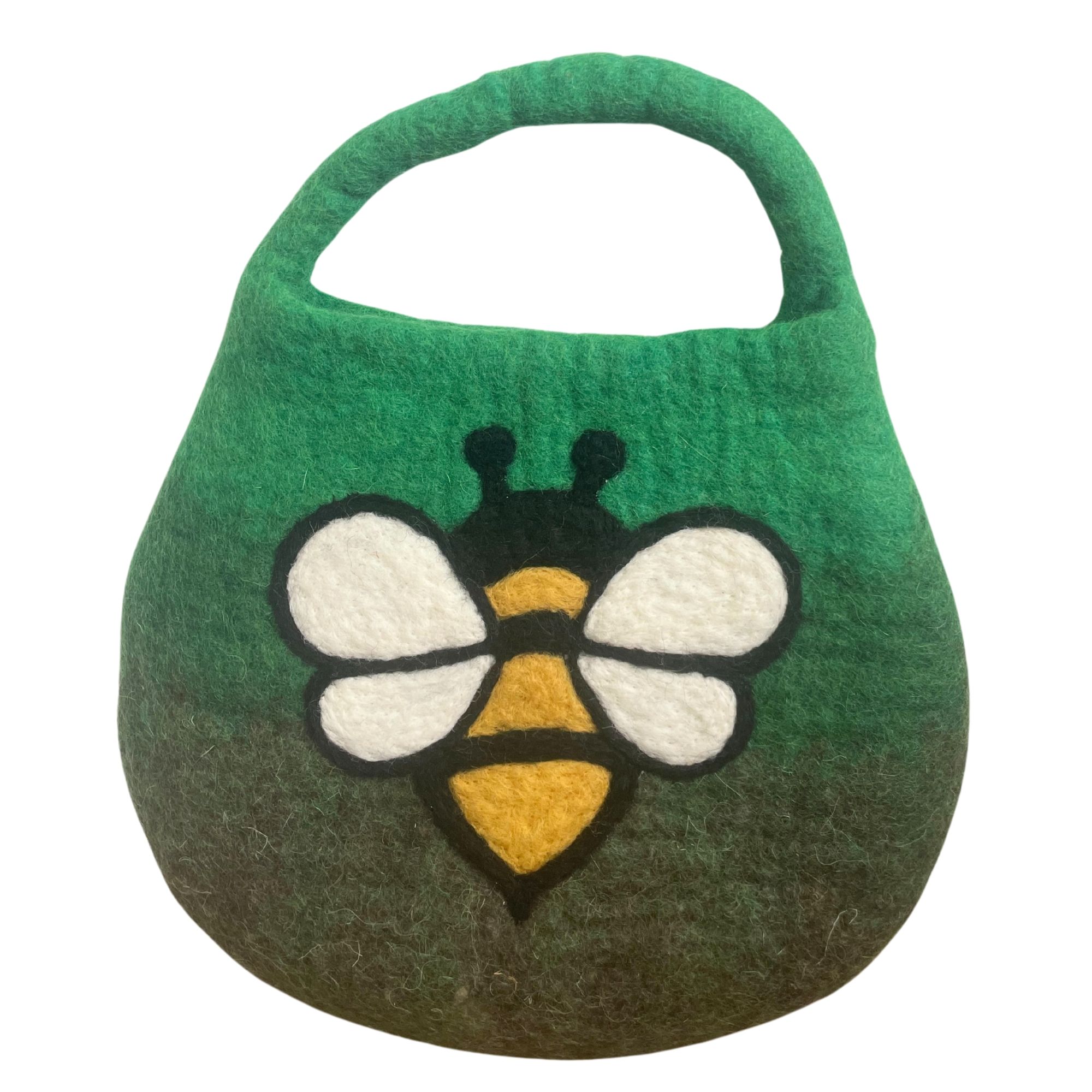 Water Felted Bee Bag – One Handle with Magnet – Garden Greens