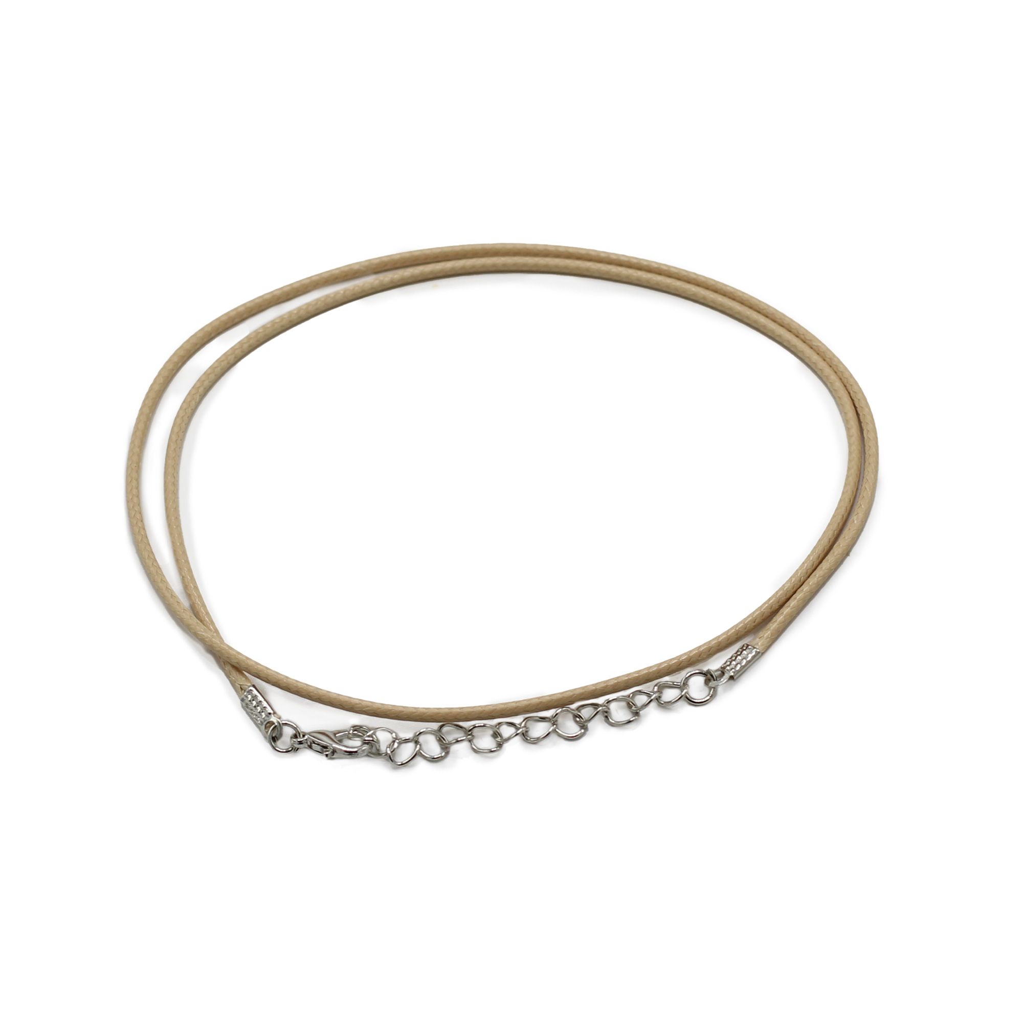 Made from high-quality waxed cotton, this cord features a delicate beige colour that adds a touch of charm and class to any project.With a thickness of 2 mm and a length of 55 cm, it is ideal for creating various jewellery pieces, such as necklaces, bracelets, and earrings. Equipped with a metal clasp, it is ready to use straight out of the package, significantly simplifying the jewellery-making process.Each cord is meticulously crafted, ensuring high quality and durability in the finished jewellery items. The beige colour is versatile and easily complements different styles and accessories, allowing for the creation of elegant and personalized jewellery projects.
